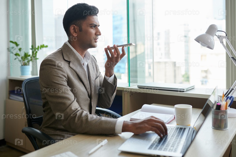 Бизнесмен, записывающий голосовое сообщение