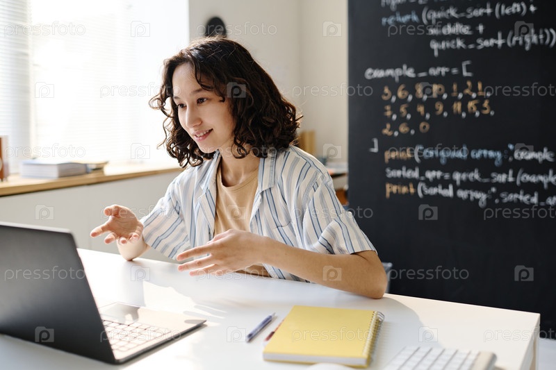 Студент, получающий онлайн-уроки на ноутбуке