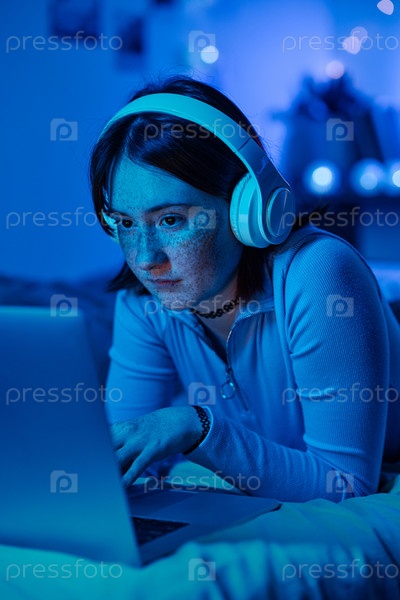 Девушка-подросток, использующая ноутбук дома
