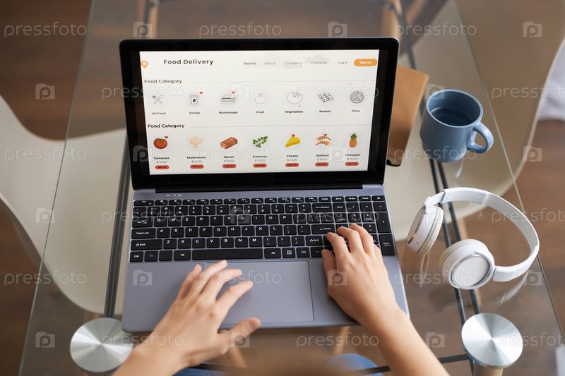 Верхний вид крупный план молодой женщины, использующей веб-сайт онлайн-магазинов