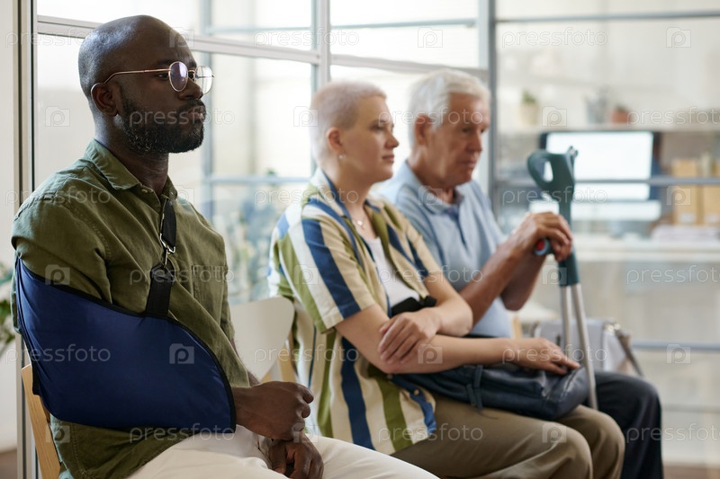 Люди сидят в очереди