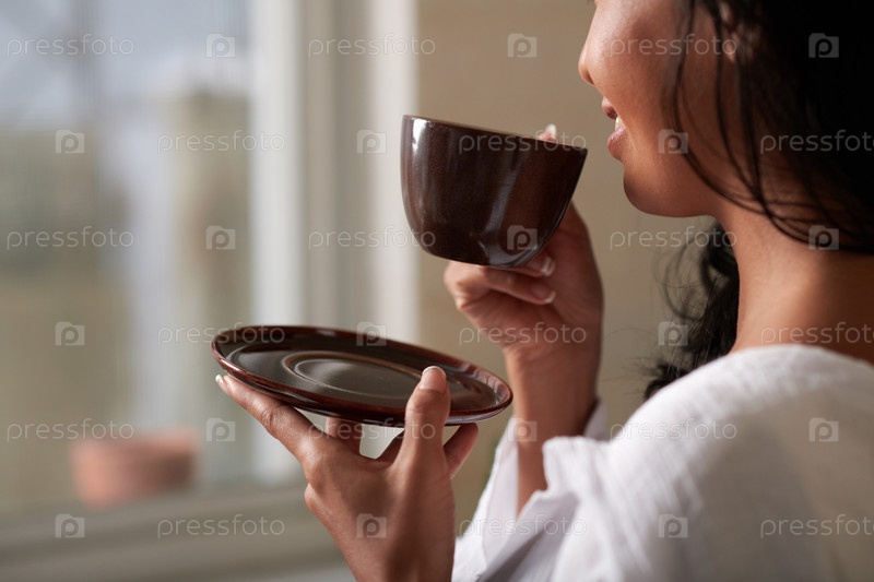 Женщина пьет кофе