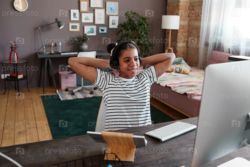 Девушка играет в игру во время свободного времени дома