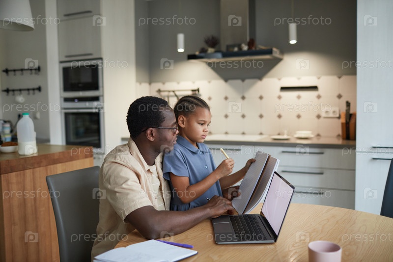 Папа помогает девочке с домашними заданиями