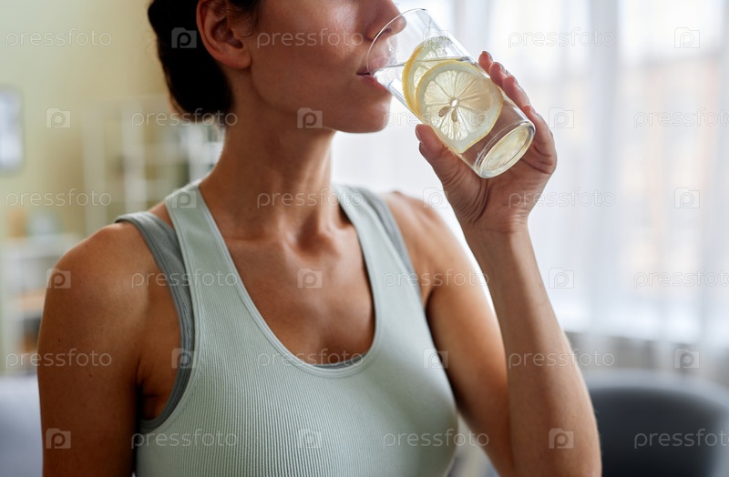 Спортивная женщина пьет стакан воды