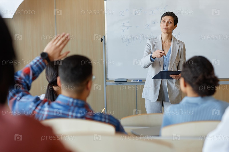 Учитель работает со студентами на лекции