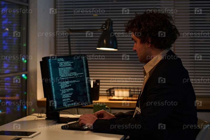 Программист, работающий с кодами на компьютере
