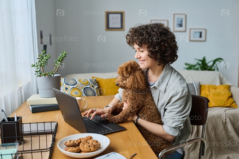 Женщина, работающая онлайн на ноутбуке дома