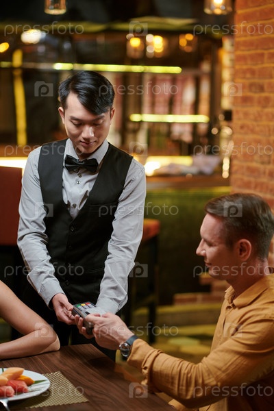 Официант принимает оплату