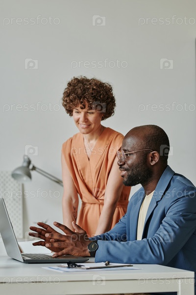 Бизнесмен обсуждает проект с коллегой