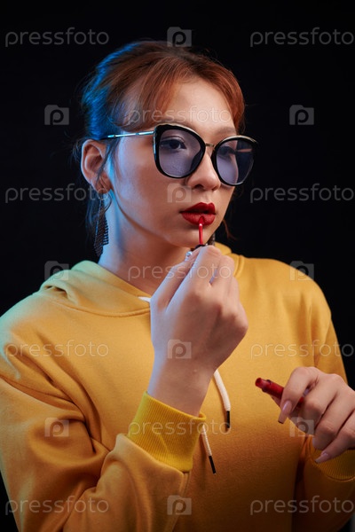 Женщина, наносящая красную помаду