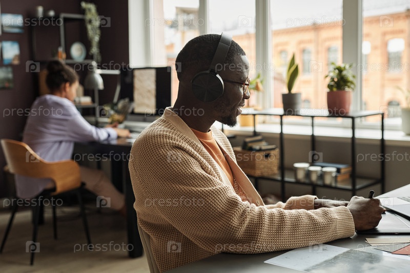 Графический дизайнер наслаждается хорошей музыкой