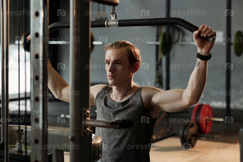 Спортсмен, выполняющий упражнения в машине Pull Down
