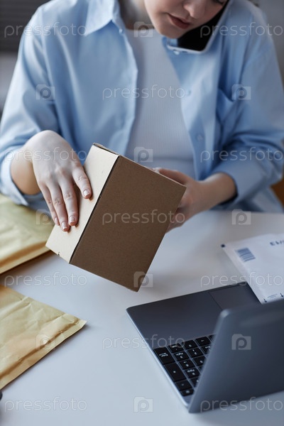 Близкий план молодого менеджера интернет-магазина, общающегося с клиентом