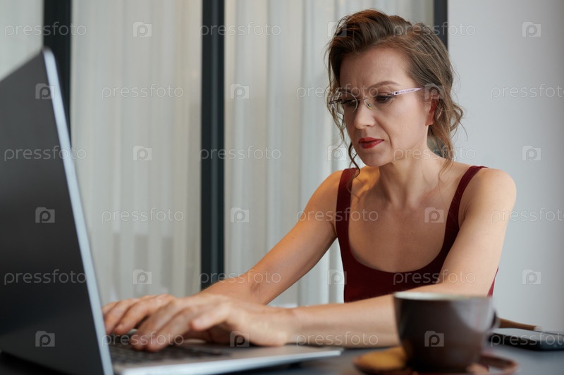Женщина-менеджер, печатающая на ноутбуке