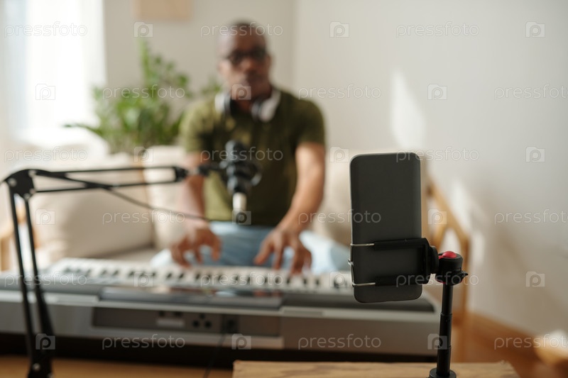 Художник снимает себя, играя на синтезаторе