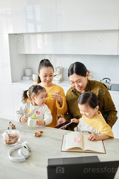 Друзья проводят время с детьми