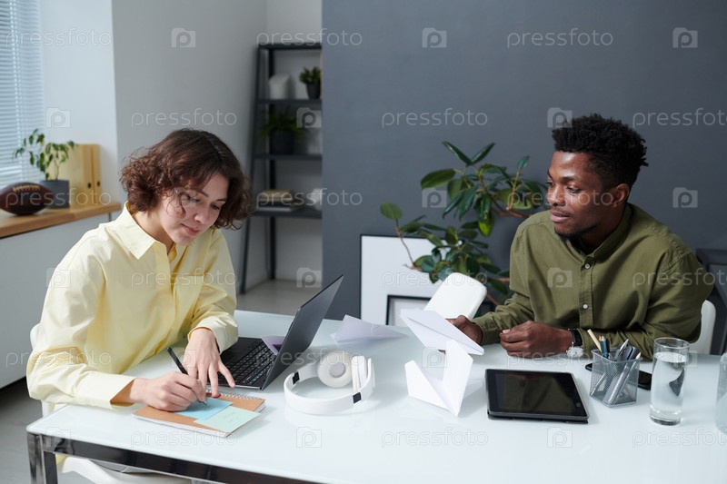 Молодые коллеги работают на встрече