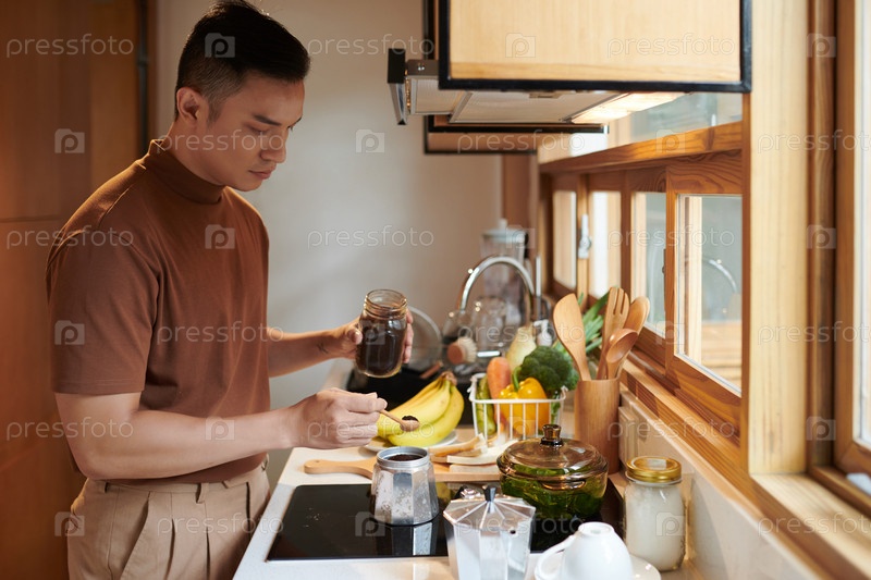 Человек, кладущий кофе в горшок