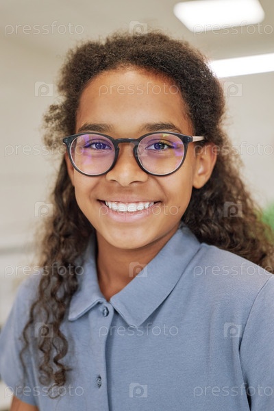 Портрет улыбающейся чернокожей девушки в очках