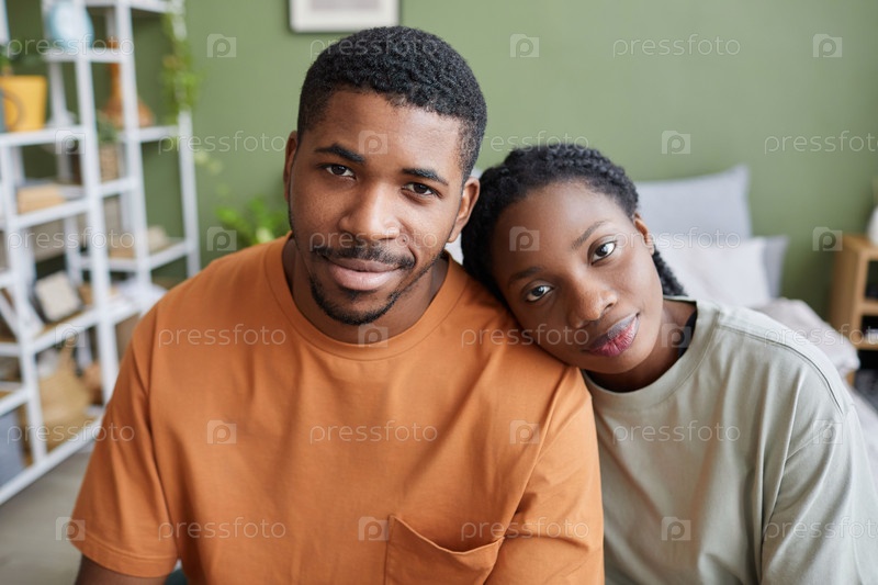 Молодая афроамериканская пара сидит в спальне