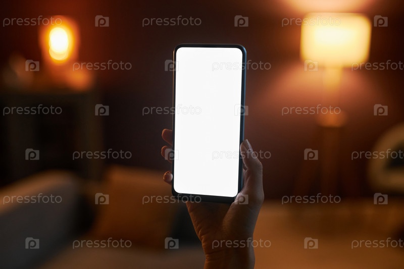 Женская рука, держащая смартфон с макетом белого экрана