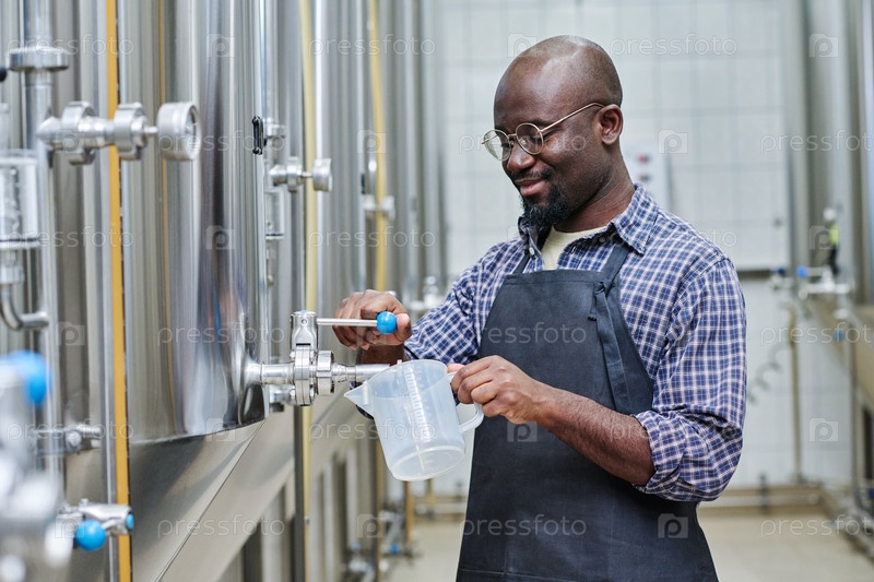 Работник дегустирует пиво после приготовления