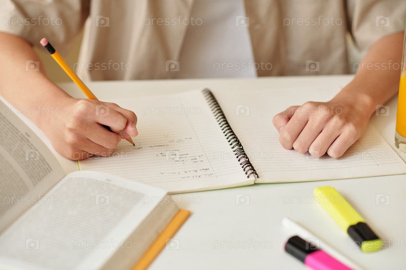Школьный ребенок, выполняющий домашнее задание по математике