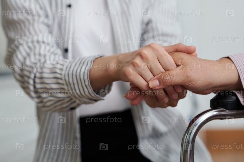 Женщина, поддерживающая жену, сидящую в инвалидном кресле