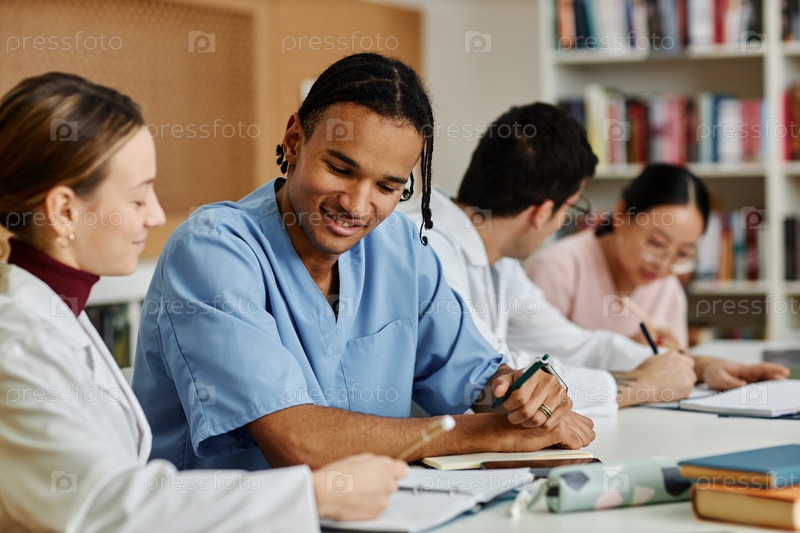 Разнообразная группа молодых медицинских работников во время встречи или семинара