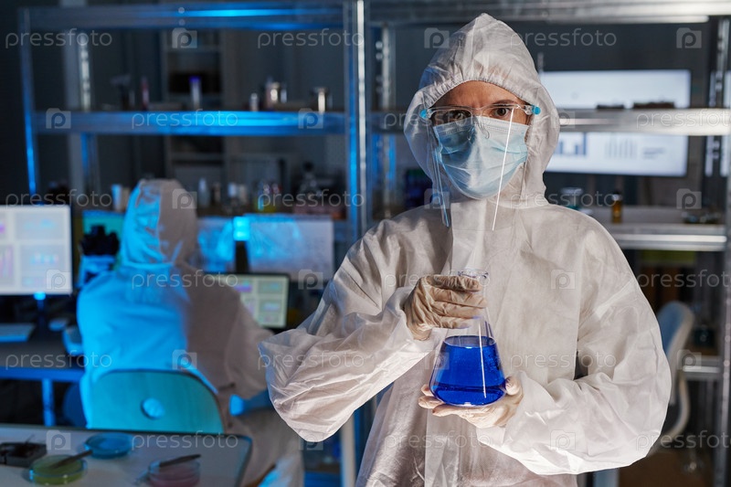 Химик с пробиркой, работающий в лаборатории