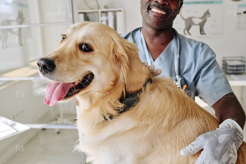 Ветеринарный врач, заботящийся о ретривере