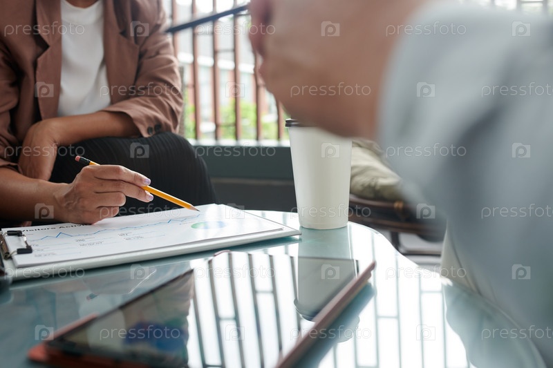 Женщина-предприниматель показывает на график