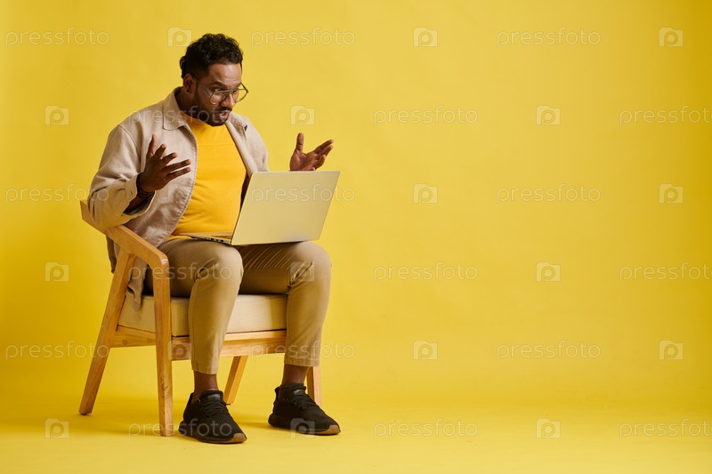 Эмоциональный бизнесмен проводит онлайн-встречу