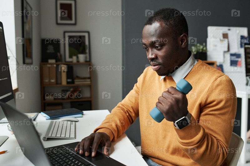 Бизнесмен занимается спортивными упражнениями во время работы
