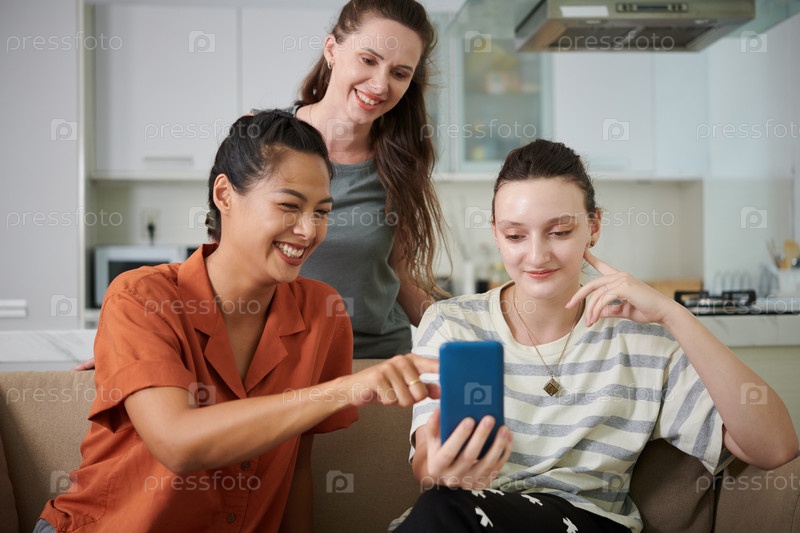 Друзья делают селфи-портрет на смартфоне