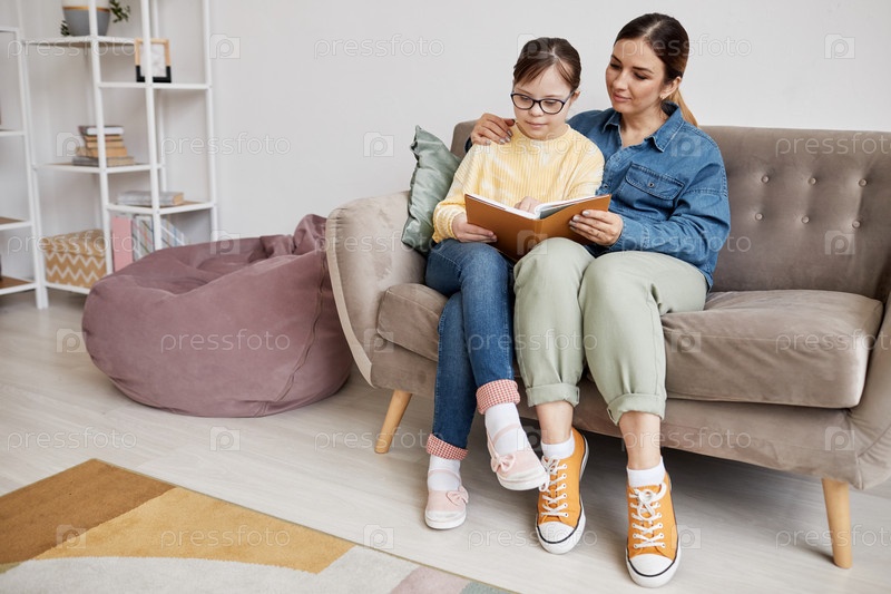 Мама и дочь читают книгу дома