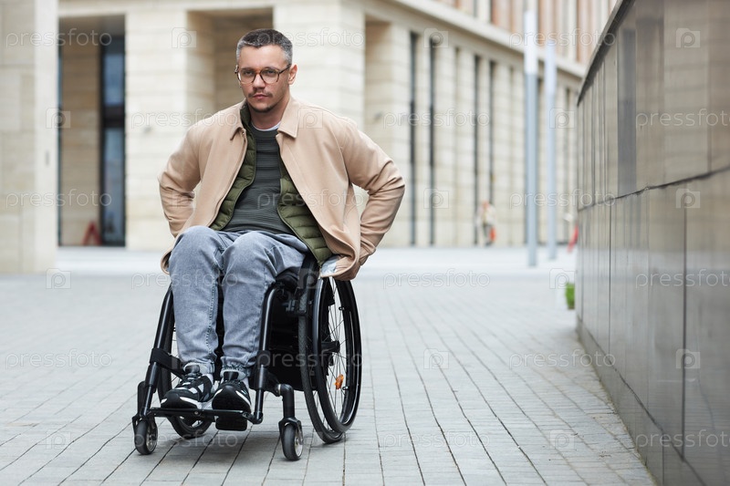 Человек с ограниченными возможностями ходит по городу