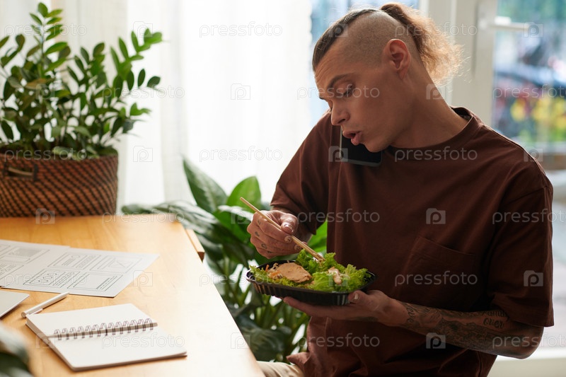 Фрилансер, съедающий обед