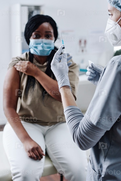 Медик держит шприц для инъекций