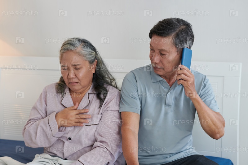 Обеспокоенный пожилой мужчина звонит доктору