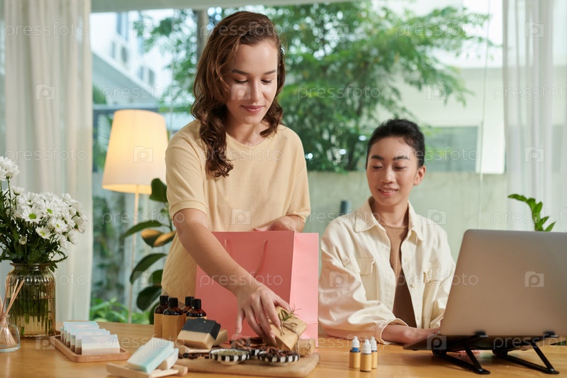 Упаковка органической косметики женщина