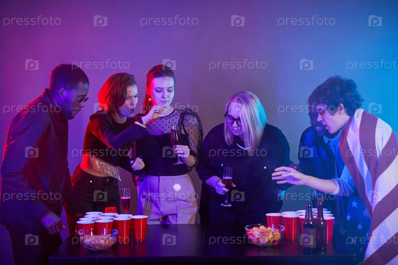 Группа людей, играющих в игру на выпивку на вечеринке