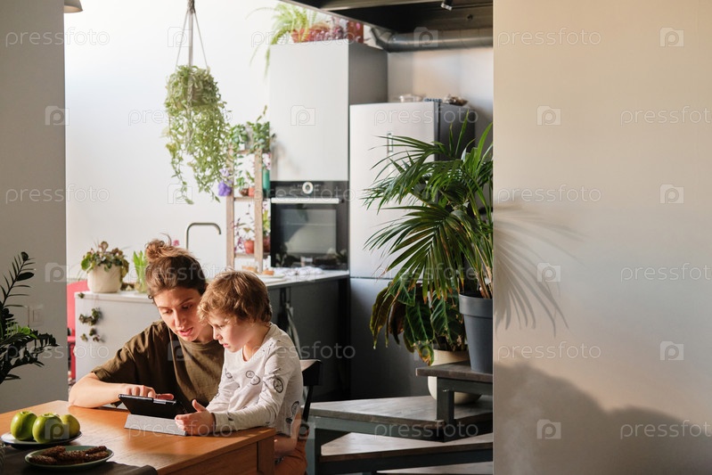Мать учит своего ребенка онлайн