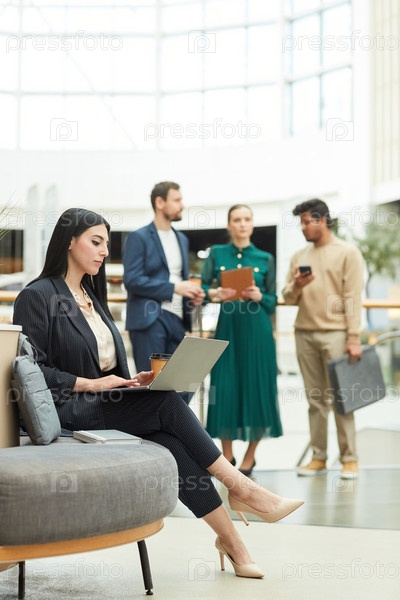 Женщина, использующая ноутбук в комнате ожидания