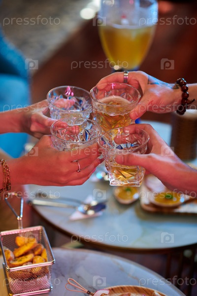 Друзья, стучащие стаканами за столом