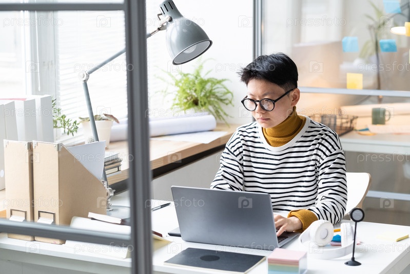 Деловая женщина, работающая на ноутбуке в офисе