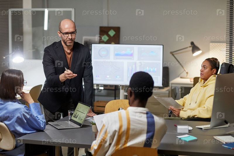 Бизнес-лидер, обучающий команду на встрече