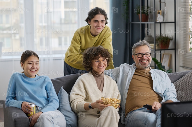 Семья смотрит телевизор дома