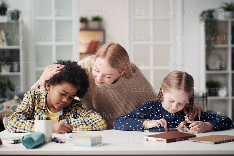 Мать проводит время с детьми дома